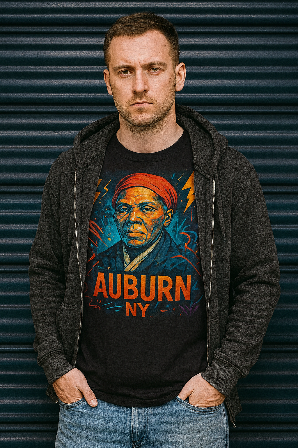 Turn heads with this bold Auburn NY Street Art Tee. Featuring a vibrant graffiti-style portrait with lightning accents, this design blends urban street culture and hip-hop style into a wearable piece of art. Printed on a premium black tee, the colors pop with energy and attitude, making it perfect for everyday wear or as a statement piece.